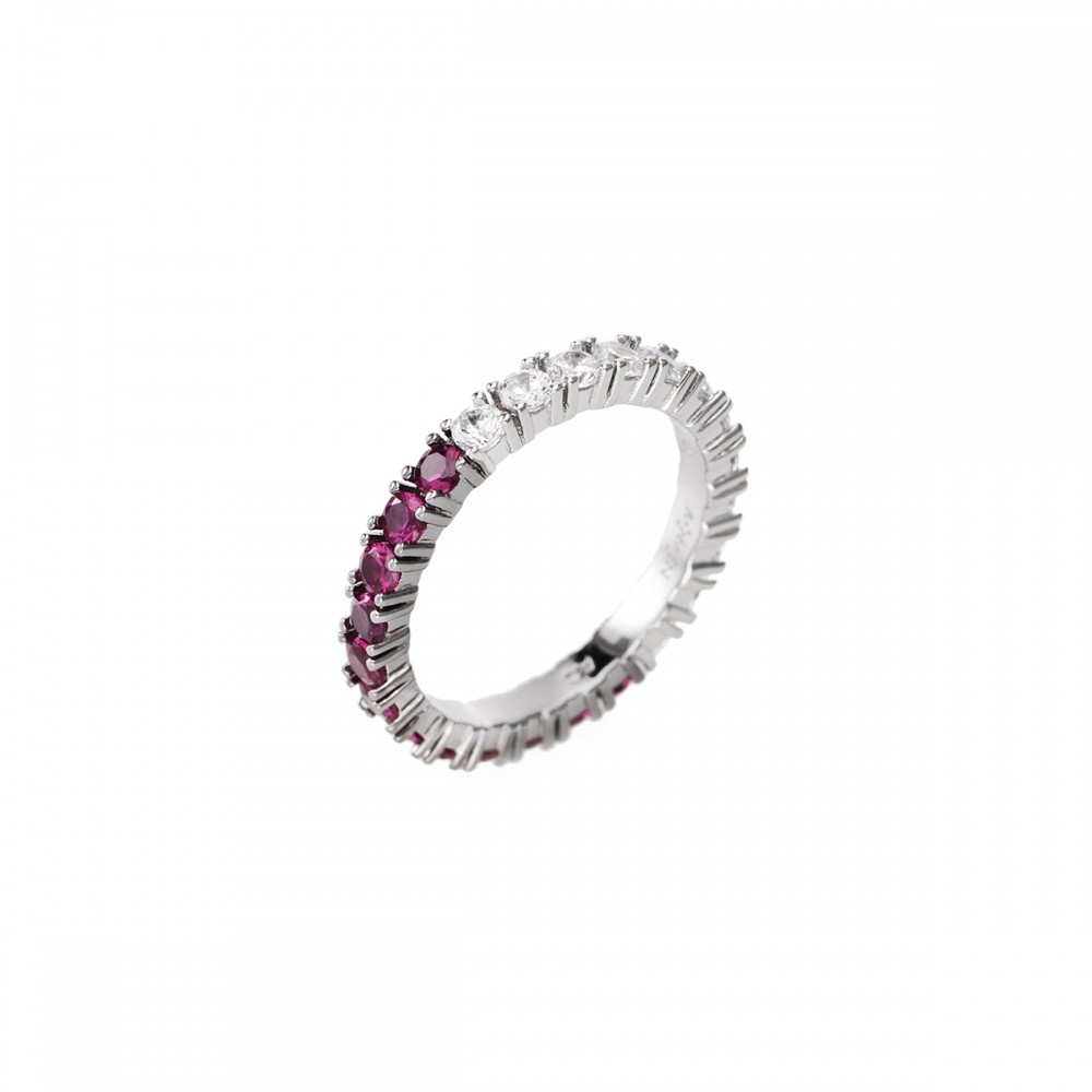 Anello Da Donna Di Amen. Gioiello Realizzato In Argento 925 Di Colore Argento Zirconi Bianchi E fucsia.