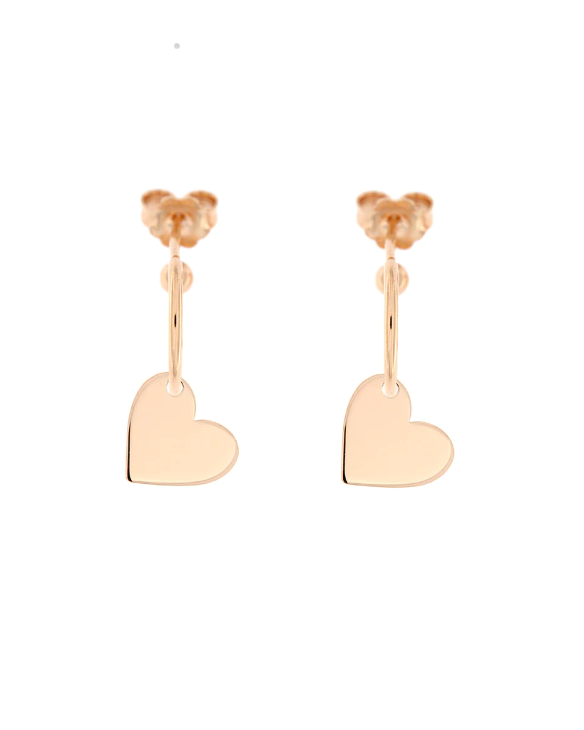 Orecchini cerchio della collezione Rue Des Mille I Sogni Son Desideri da donna. Colore: oro rosa. Gli orecchini in argento 925% con placcatura oro rosa 18kt sono a cerchio aperto di diametro 1 cm con pendente a cuore. Chiusura a perno.